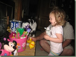 Finally, our Easter Sunday review! What a delightful day of fun and family we had. It all started with the “Easter Bunny” hiding our homemade eggs around the house before Bridget got up.